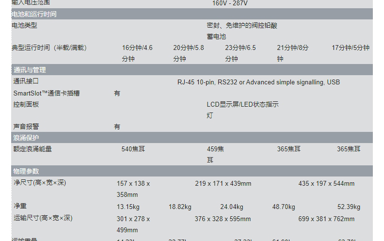 USB和串行端口、SmartSlot™智能卡插槽,支持APC管理附件卡,满足各种电源管理需求。