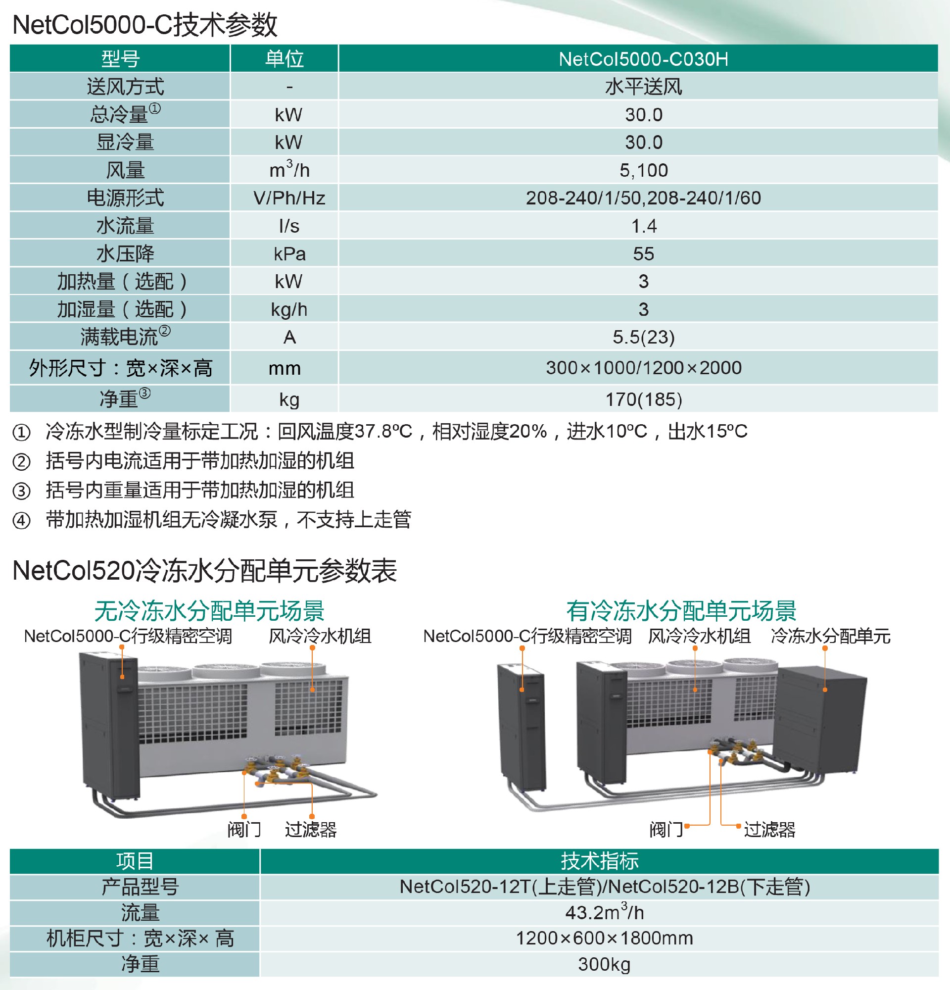NetCol5000-C是华为公司推出的行级冷冻水温控产品,是一种安装在机房内的末端送风单元,通常与冷水机组、水泵、冷冻水管道等共同组成一个完整的制冷系统。它采用EC风机,兼具制冷和除湿,通常安装在机柜排中,紧靠热源,实现近端制冷,为中高密度数据中心提供散热解决方案。助力于打造下一代绿色数据中心。