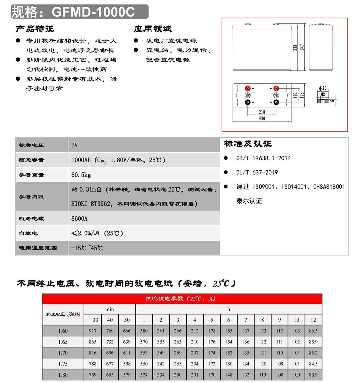 1. 容量范围(C10):100Ah—800Ah;
