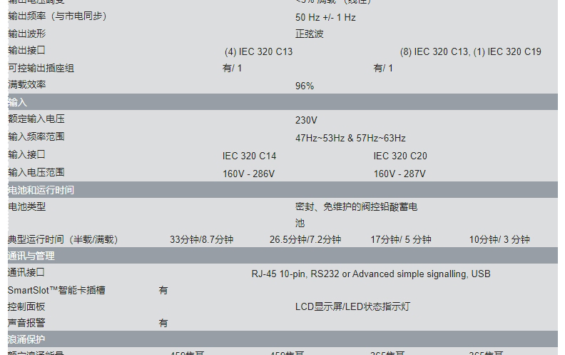 USB和串行端口、SmartSlot™智能卡插槽,支持APC管理附件卡,满足各种电源管理需求。