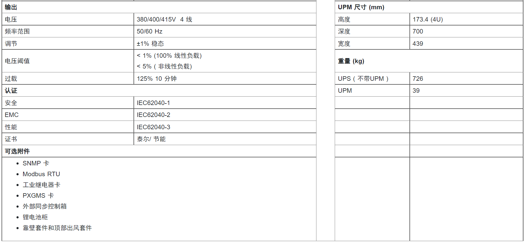 - 一站式集成了完全隔离功能(输入/ 输出/ 输出/MBS 开关备齐,内置旁路快速熔丝。