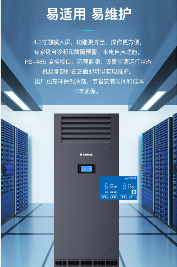 • 大风量,小焓差设计,适用于机房环境,为主设备提供连续,稳定的温湿度环境